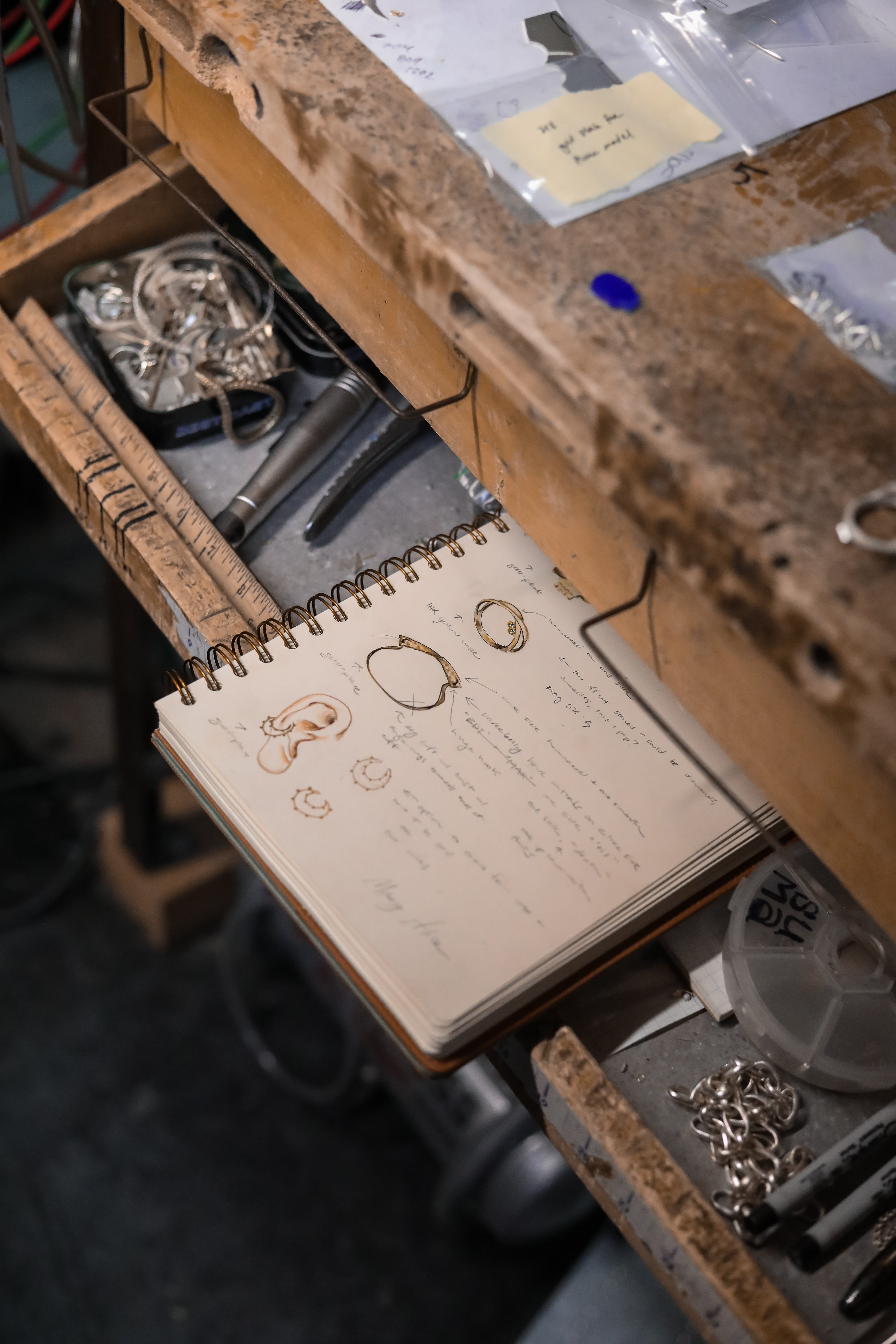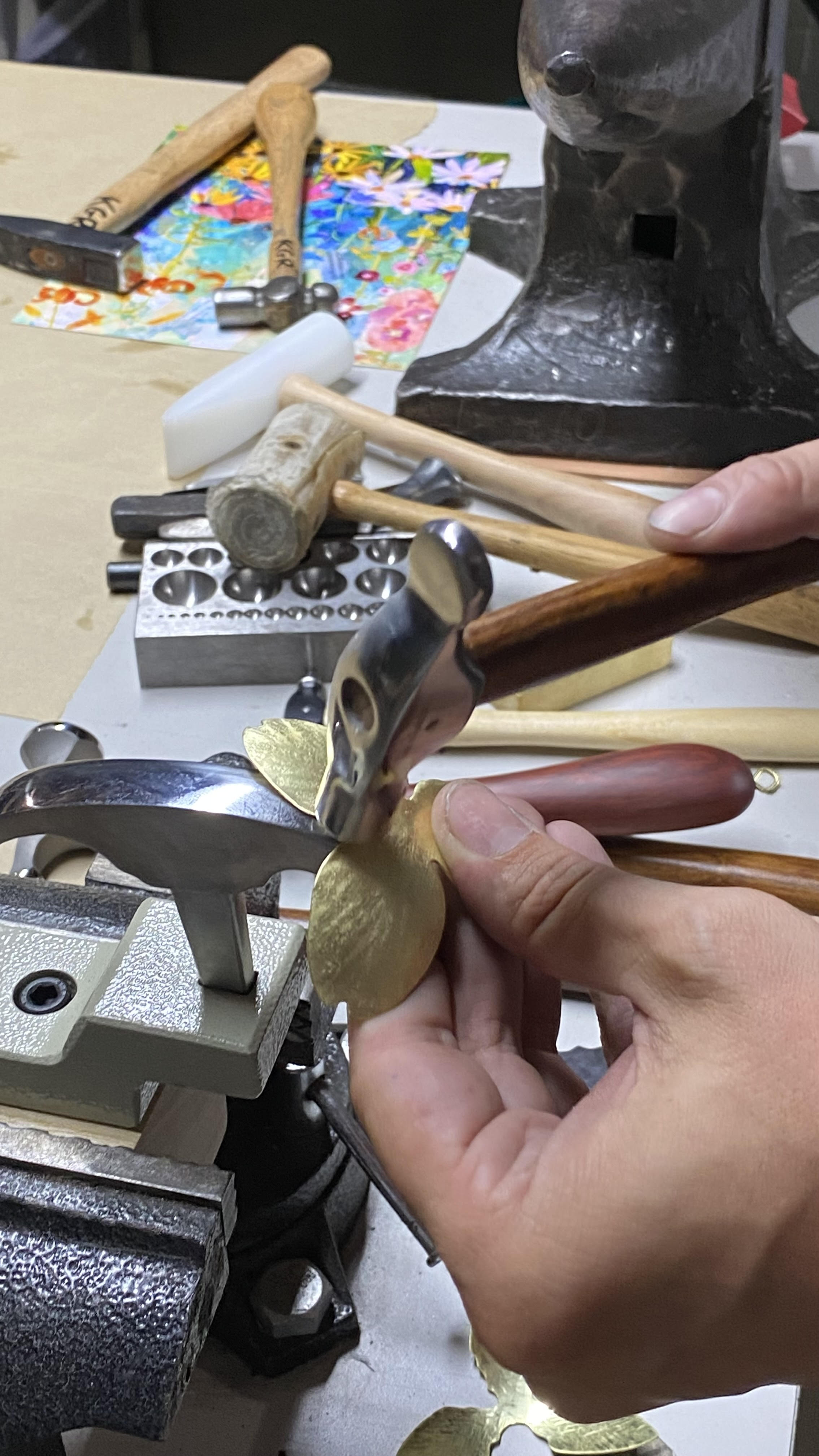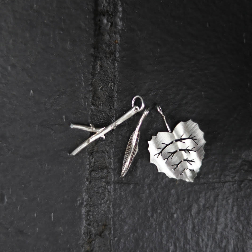 Hand fabricated pendants representing the names of her children (Aspen, Briar, Willow).