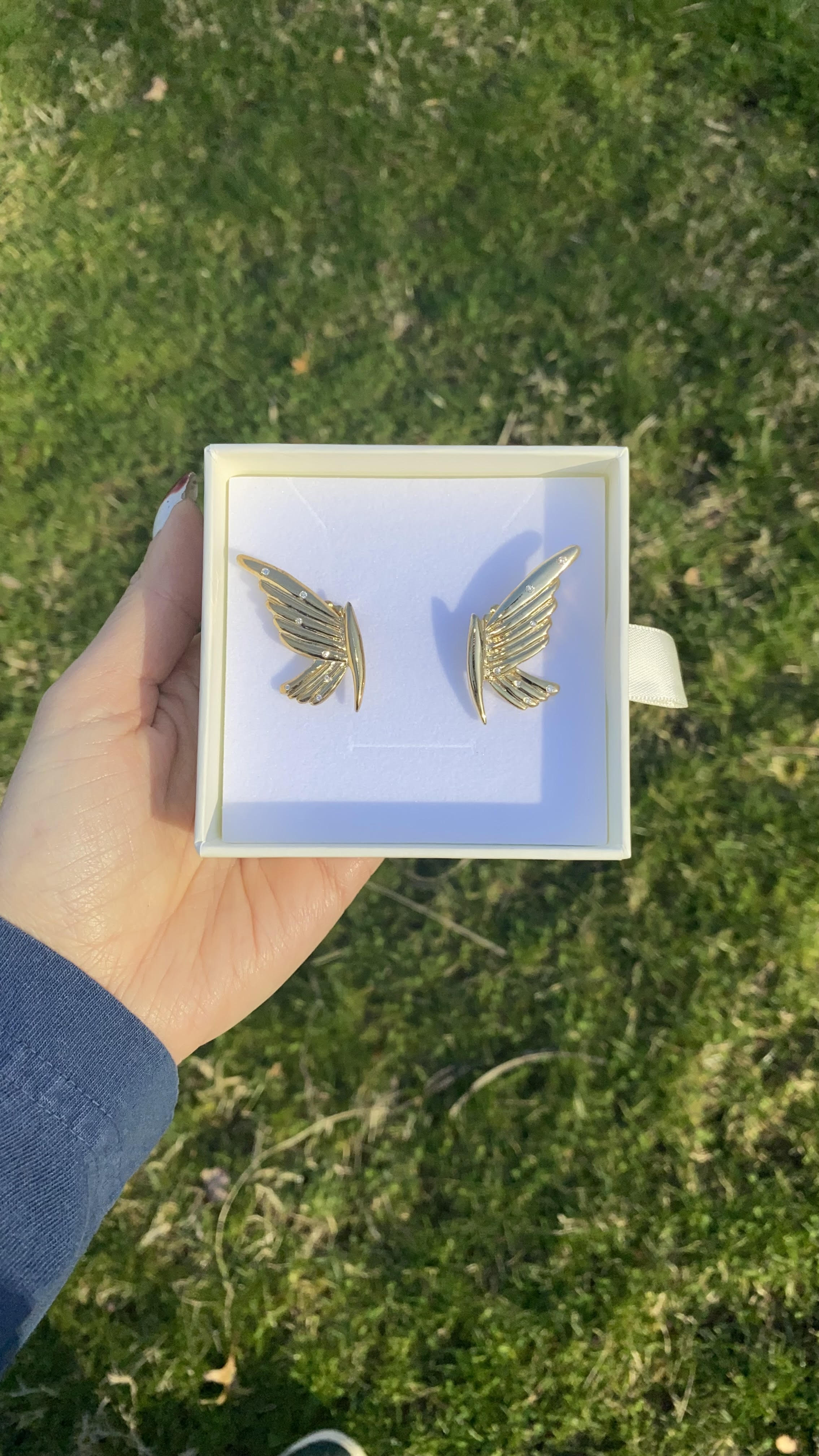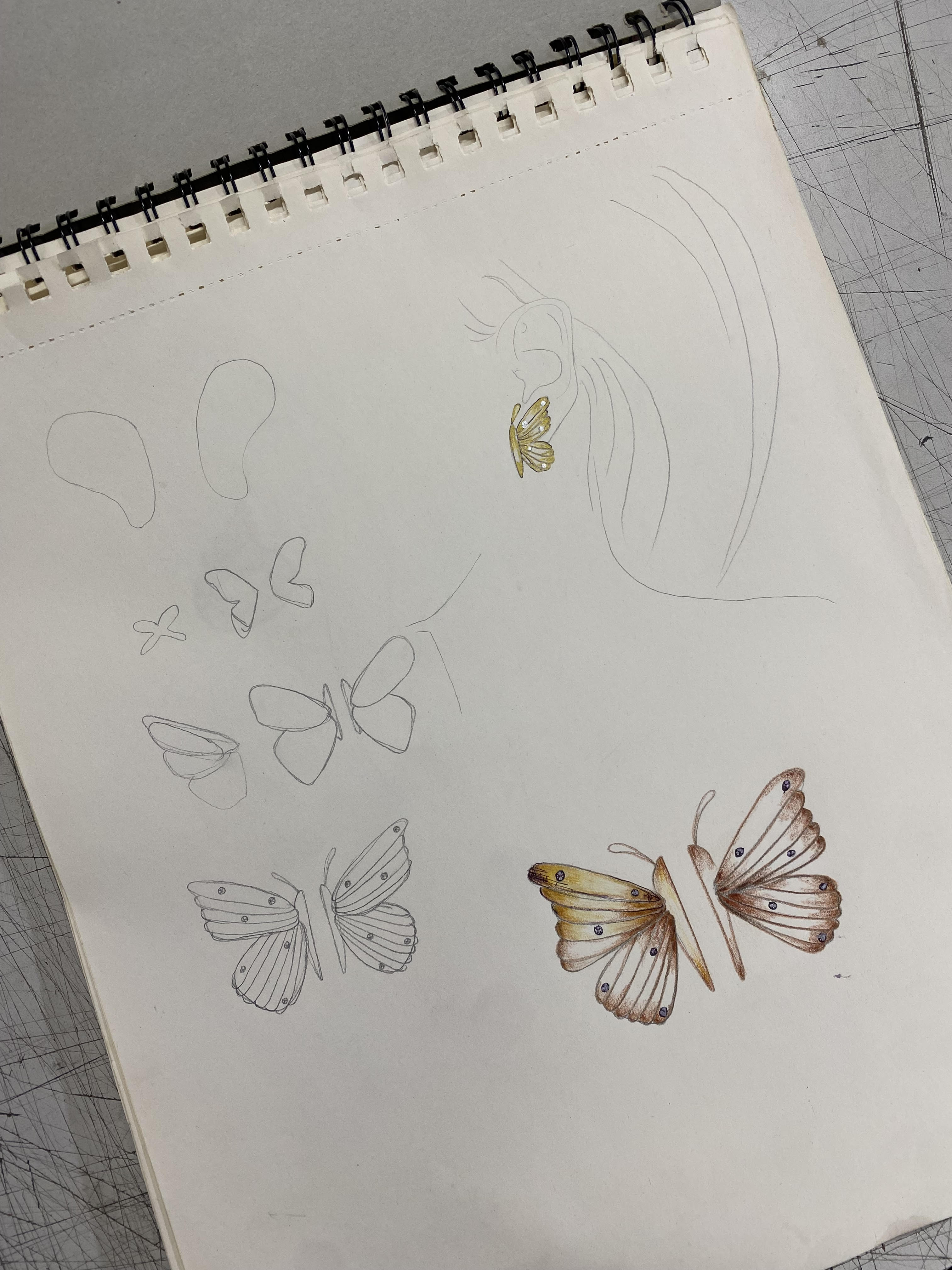 Hand-carved gold butterfly earrings with handset melee diamonds for the bride.