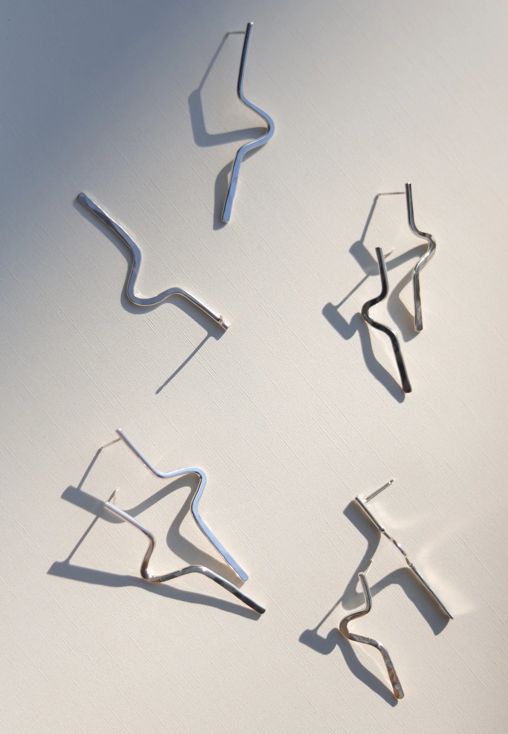 Out There Earrings These lightweight earrings feature a delicate hammered and polished finish that adds light and dimension to each pair. Hand-crafted in our Suma studio. Details: Sterling Silver Short: 1 3/4'' long x 1/2'' wide Long: 2 1/4'' long x 1/2'' wide
