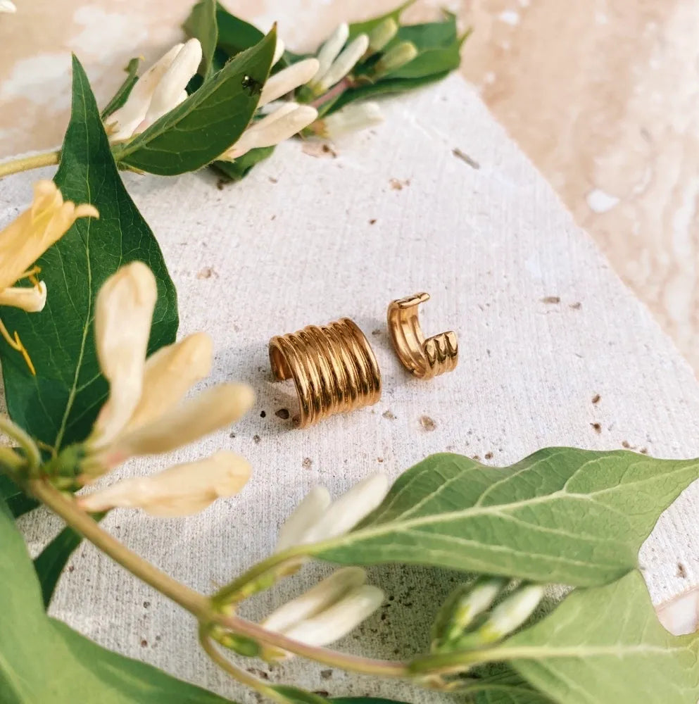 The Riptide ear cuff is designed and hand-crafted in-house. Each piece is made to order and will take between 10-15 business days to process. Comes in small (4.7 mm wide) or large (11.2 mm wide) Choose your metal finish: -sterling silver -14k gold-plated sterling silver -14k solid gold
