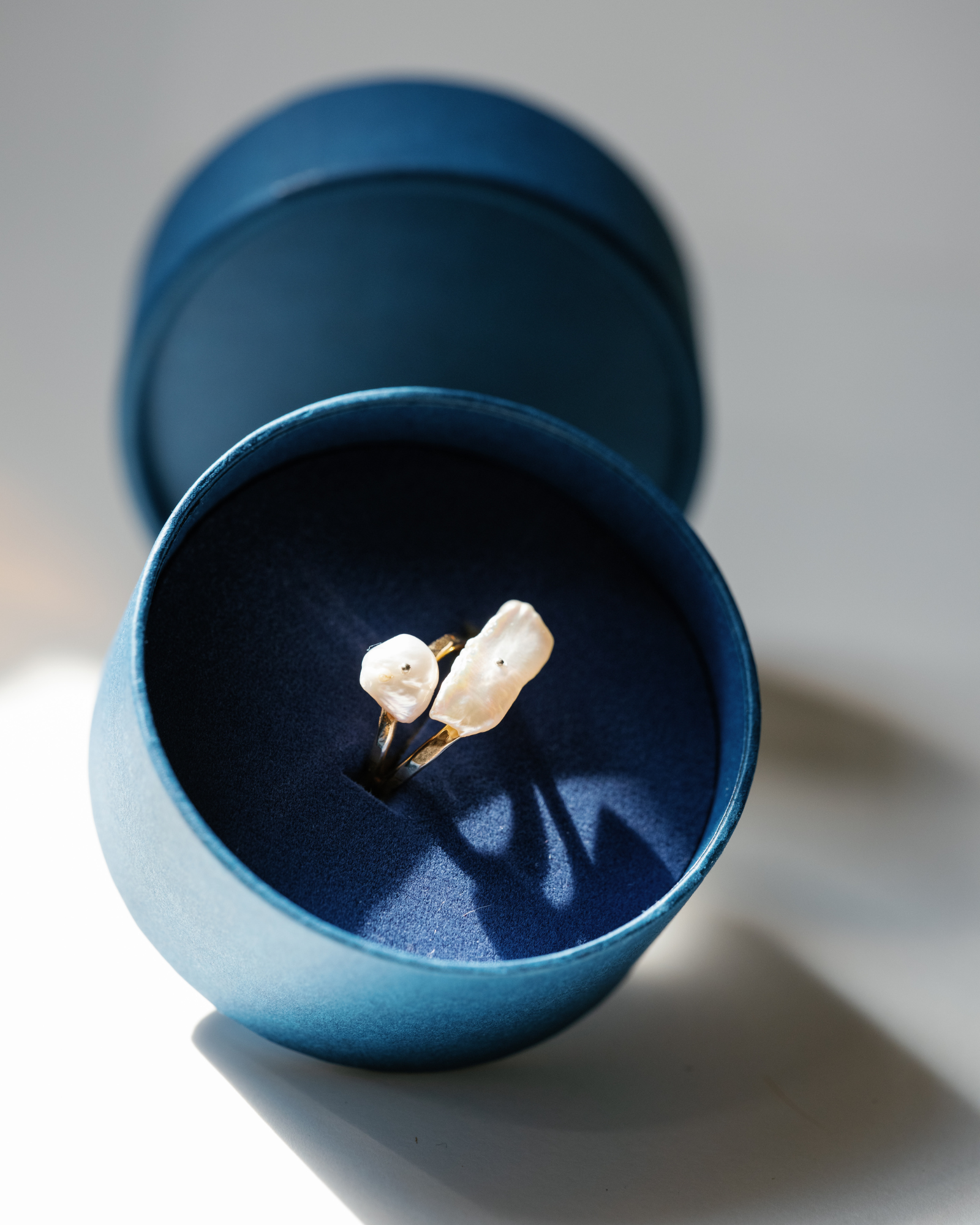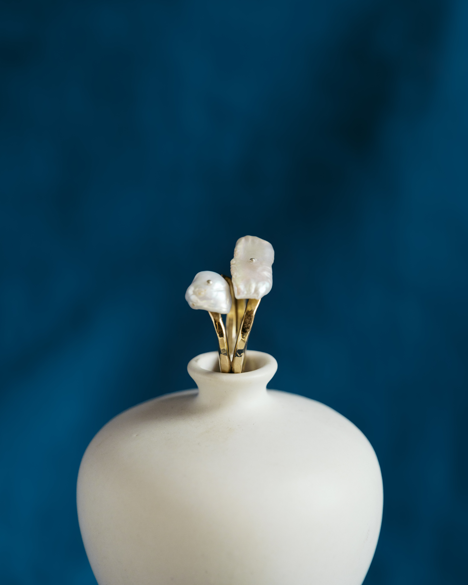Every ring is crafted by hand using freeform pearls, so no two will be exactly alike. Your piece will be similar in style to what’s pictured, but the pearls will vary slightly — making your ring truly unique, just like the one who wears it.
