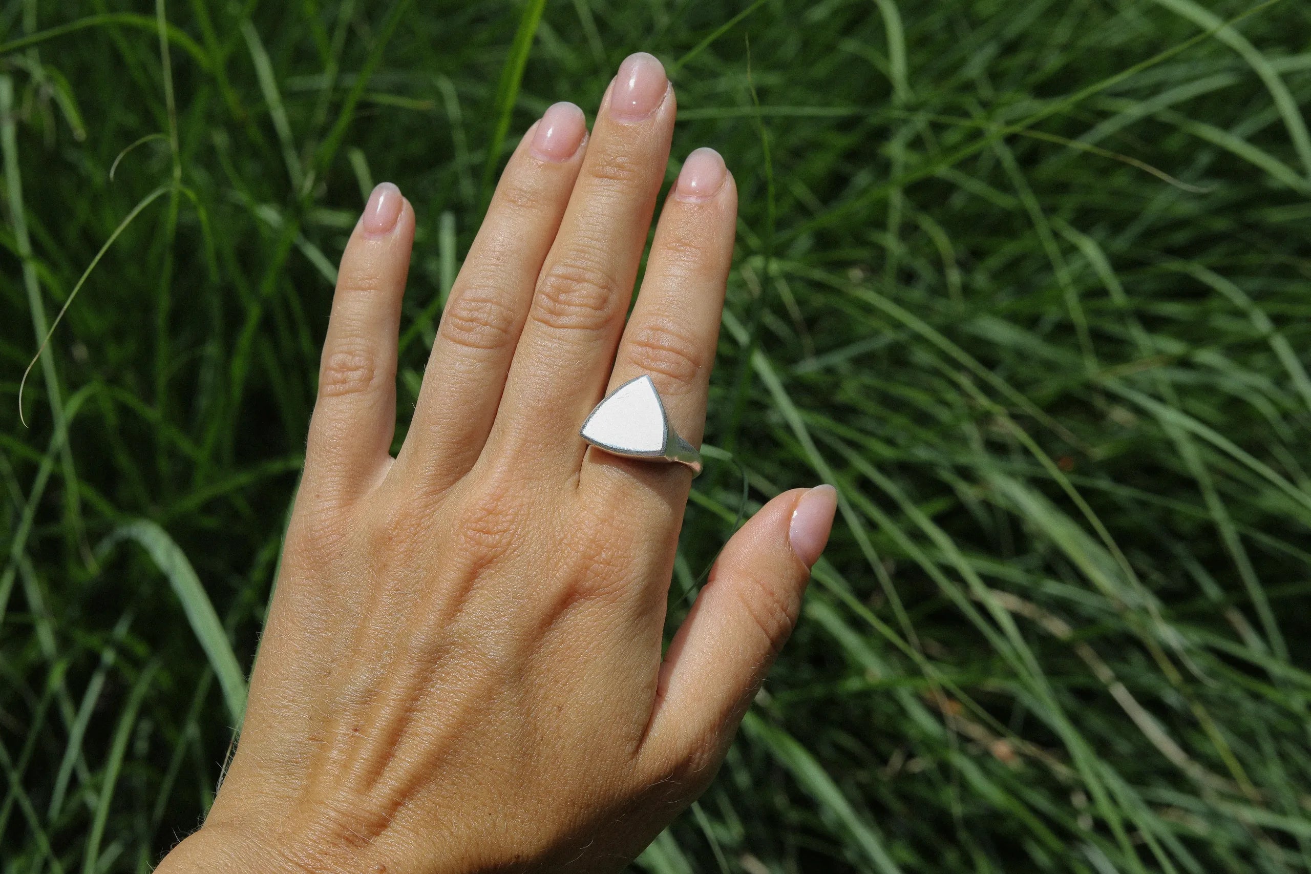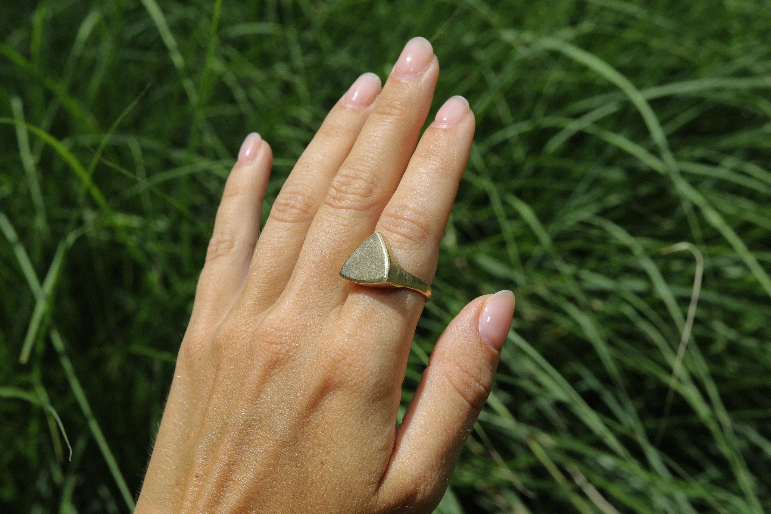 A traditional piece redefined: our handmade Engravable Trillion Signet Ring has been thoughtfully designed and handcrafted in our Suma studio. This ring has a classic silhouette with a modern twist, assuring your distinct aesthetic is reflected in a ring meant for everyday expression.
